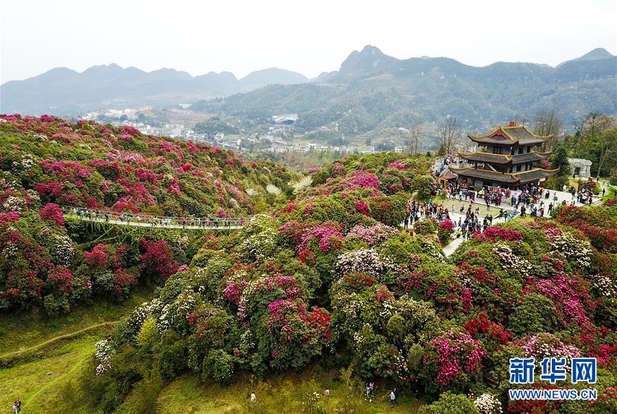 位于貴州省畢節(jié)市的百里杜鵑自然保護(hù)區(qū)(無(wú)人機(jī)照片,2017年4月2日攝)。新華社記者陶亮攝