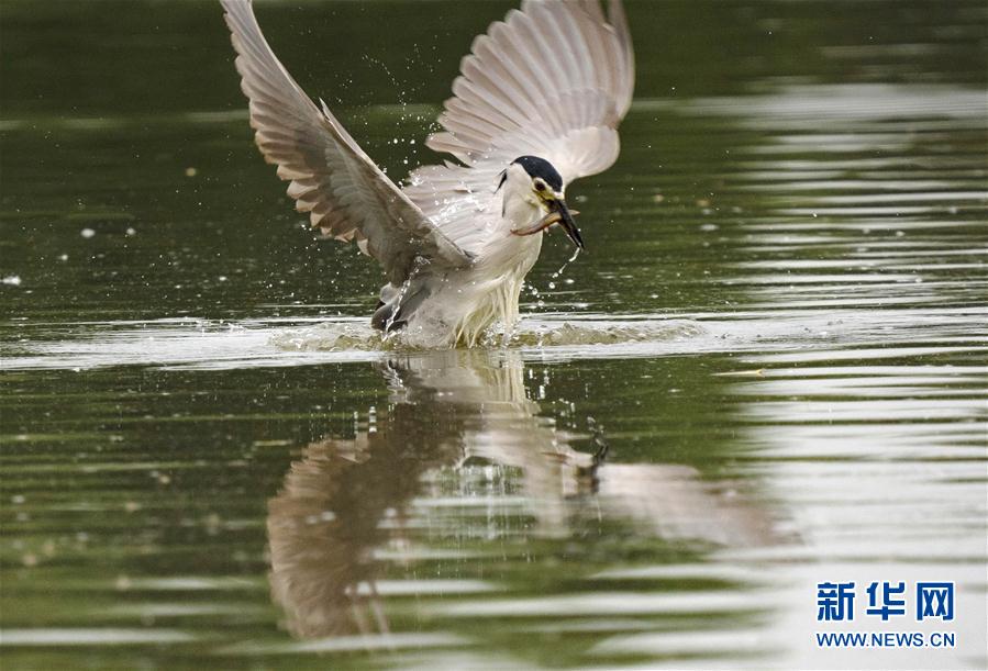 8月3日,夜鷺在唐山南湖公園覓食。近日,大批鷺鳥飛抵河北唐山南湖公園,在此覓食、嬉戲。唐山南湖公園所在地曾是因采煤沉降形成的廢棄地,經(jīng)綜合治理,成為一座水域面積11.5平方公里、綠地面積16平方公里的生態(tài)公園。新華社記者楊世堯攝