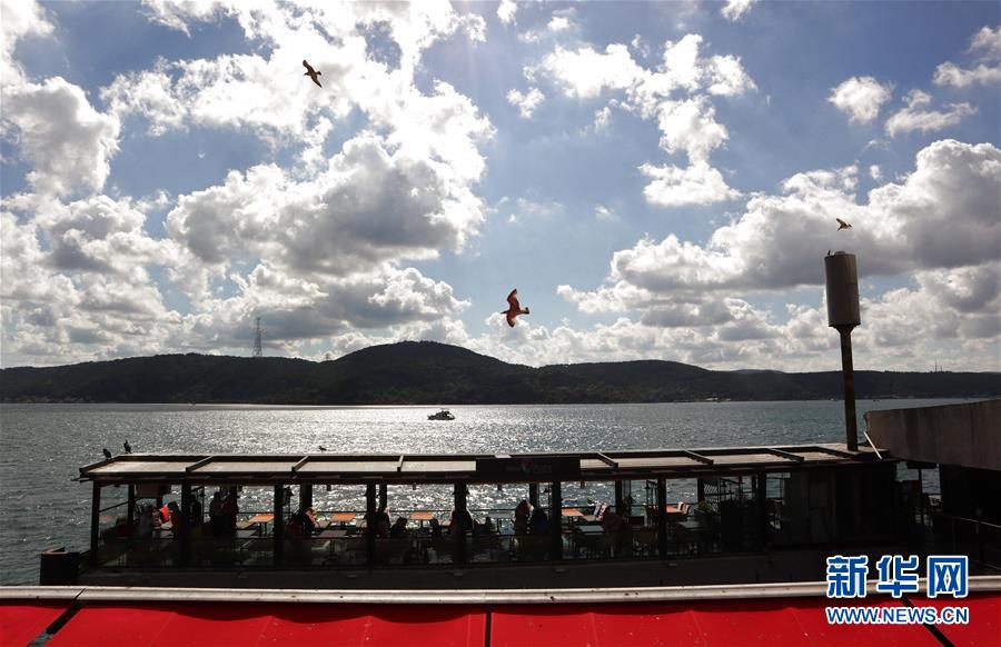 這是8月3日在土耳其伊斯坦布爾拍攝的海濱美景。土耳其伊斯坦布爾的海濱碧水云天,景色宜人。新華社記者徐速繪攝