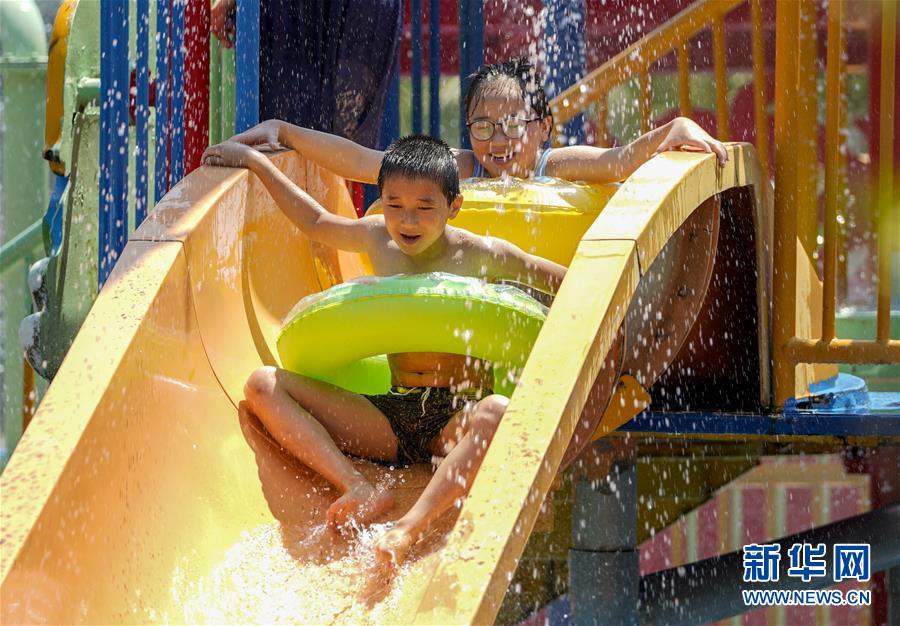 8月5日,重慶涪陵紅酒小鎮(zhèn)水上樂園內,市民在體驗水上游樂項目。當日,重慶市氣象臺再次發(fā)布“高溫橙色預警信號”,重慶大部分海拔400米以下地區(qū)日最高氣溫將升至37℃以上,局地可達40℃以上。許多重慶市民涌進當?shù)氐乃蠘穲@和泳池,在水中享受夏季的清涼。新華社記者劉潺攝