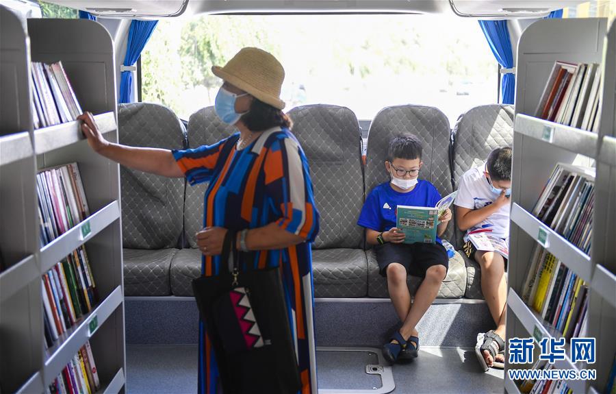 8月5日,長(zhǎng)春市民在“流動(dòng)圖書館”里看書。三千冊(cè)圖書,一輛大巴車,穿梭在城市的街頭巷尾。在吉林長(zhǎng)春,長(zhǎng)春市圖書館利用流動(dòng)圖書車,定期在市內(nèi)15個(gè)固定服務(wù)點(diǎn)間巡回流動(dòng),為市民提供便捷的圖書借閱服務(wù)。新華社記者許暢攝