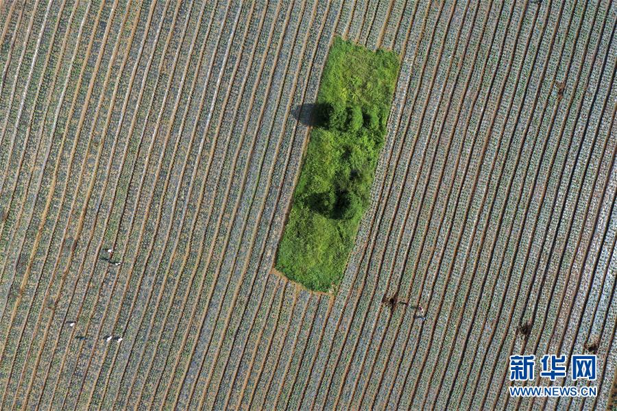 這是威寧縣草海鎮(zhèn)中海社區(qū)蔬菜基地(8月6日攝,無人機照片)。新華社記者金良快攝