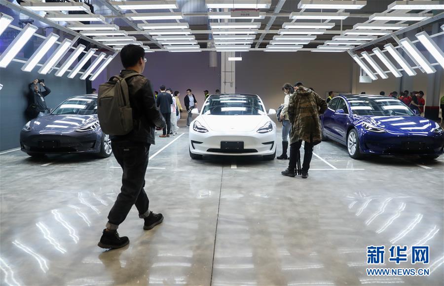 這是1月7日在特斯拉上海超級(jí)工廠拍攝的中國(guó)制造Model3汽車(chē)。新華社記者方喆攝