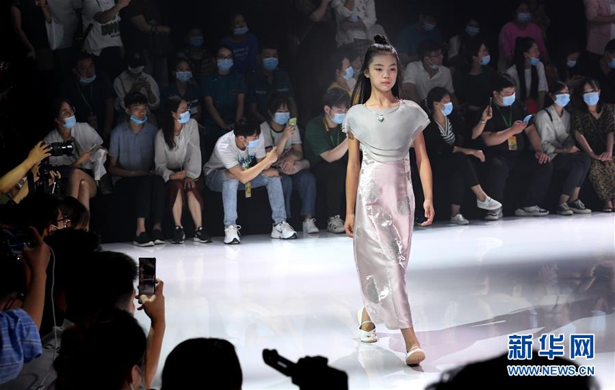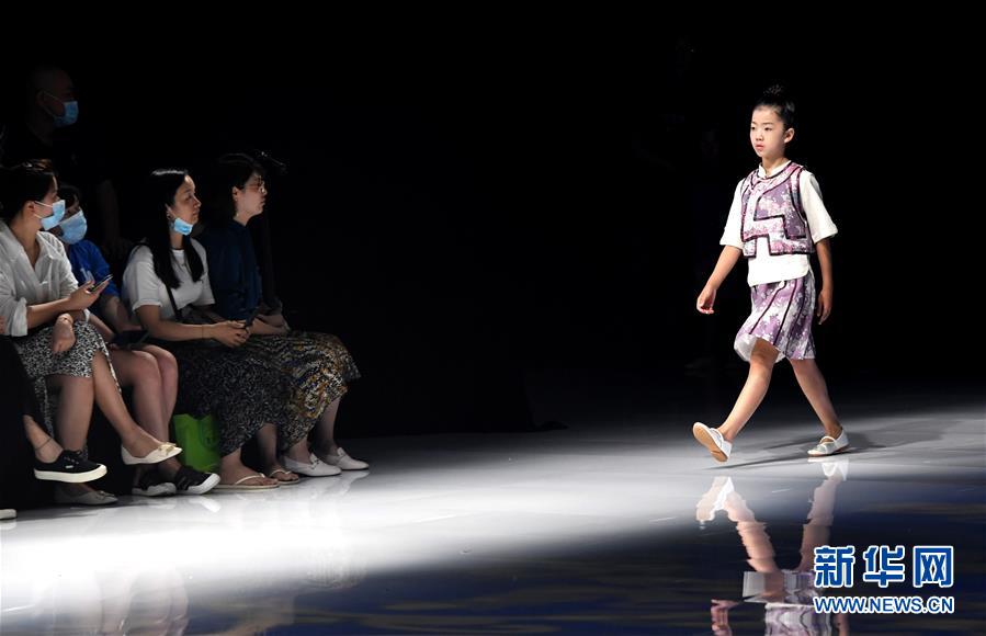 8月7日,小模特在T臺上展示童裝。當(dāng)日,2020中國(河南)國際大學(xué)生時裝周舉行童裝設(shè)計專場展示。8月5日至7日,2020中國(河南)國際大學(xué)生時裝周在河南省新密市豫發(fā)密蘭小鎮(zhèn)舉行。新華社發(fā)(海雨涵攝)
