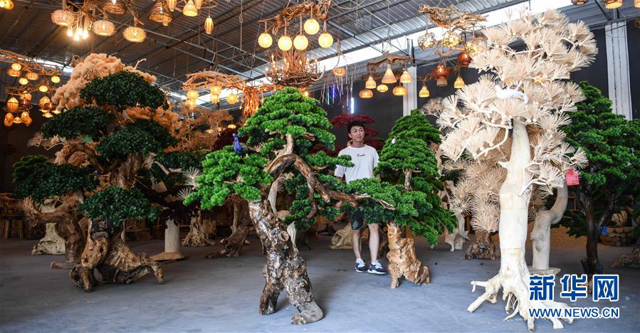8月7日,工人利用柑橘樹枝加工吊燈飾品。2017年以來,廣西桂林市永??h永安鄉(xiāng)通過幫扶返鄉(xiāng)青年創(chuàng)業(yè)的方式,建立起根雕工藝品就業(yè)扶貧車間,組織貧困群眾進(jìn)車間務(wù)工學(xué)藝,把當(dāng)?shù)刎S富的朽木和柑橘樹根枝資源利用起來,加工成盆景、茶桌、吊燈等根雕工藝品,不僅幫助貧困群眾在家門口掌握一技之長,還讓他們在脫貧摘帽后實現(xiàn)穩(wěn)定增收。新華社記者張愛林?jǐn)z