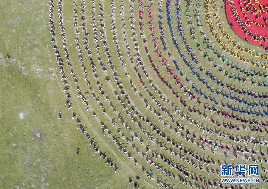 西藏首屆弦子舞展演現(xiàn)場(chǎng)(8月7日攝,無人機(jī)照片)。當(dāng)日,西藏首屆弦子舞展演在昌都市芒康縣舉行。眾多演員同臺(tái)獻(xiàn)藝,表演國家級(jí)非物質(zhì)文化遺產(chǎn)弦子舞,吸引西藏各地的群眾前來觀看。新華社記者孫非攝