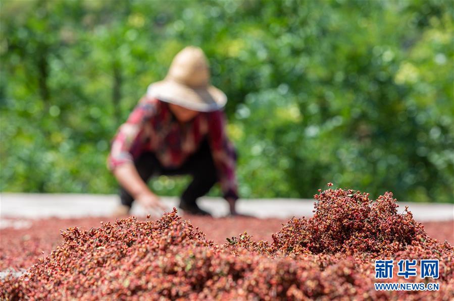 8月9日,武安市徘徊鎮(zhèn)后李甲村農(nóng)民在涼曬采摘的花椒。近日,河北省武安市花椒進入收獲季節(jié),當?shù)剞r(nóng)民搶抓農(nóng)時,花椒種植基地里一派忙碌景象。近年來,武安市將花椒產(chǎn)業(yè)作為脫貧增收的重要抓手,因地制宜擴大花椒種植規(guī)模。目前,全市花椒種植面積約12萬畝。新華社記者王曉攝。
