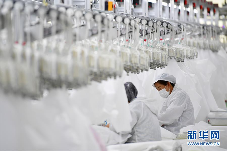 8月9日,甘肅拓奇扶貧車間的員工在服裝加工生產(chǎn)線上作業(yè)。甘肅拓奇扶貧車間位于甘肅省臨夏回族自治州積石山縣,是依托東西部扶貧協(xié)作平臺引進的服裝加工企業(yè)。扶貧車間建成投產(chǎn)以來帶動就業(yè)近300人,其中吸納建檔立卡貧困戶就業(yè)110人,實現(xiàn)了貧困群眾就地就近就業(yè)增收的目的,為助推當(dāng)?shù)孛撠毠约翱h域經(jīng)濟發(fā)展發(fā)揮了重要作用。新華社記者陳斌攝。