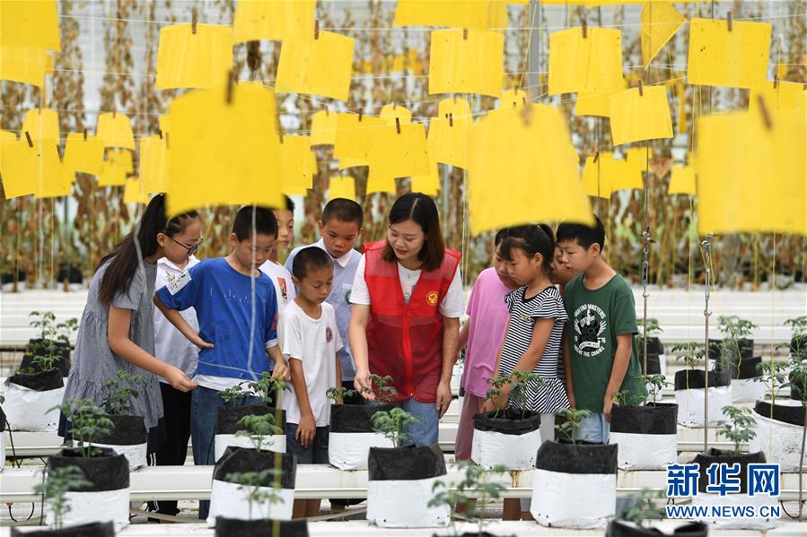 8月9日,在花崗鎮(zhèn)現(xiàn)代農(nóng)業(yè)示范區(qū)一家蔬菜種植企業(yè)內(nèi),志愿者向小朋友介紹蔬菜種植模式。當(dāng)日,安徽省肥西縣花崗鎮(zhèn)開展暑期“親近自然體驗(yàn)田園”活動(dòng),邀請轄區(qū)兒童參觀花崗鎮(zhèn)現(xiàn)代農(nóng)業(yè)示范區(qū),感受現(xiàn)代農(nóng)業(yè)的魅力。新華社記者劉軍喜攝。