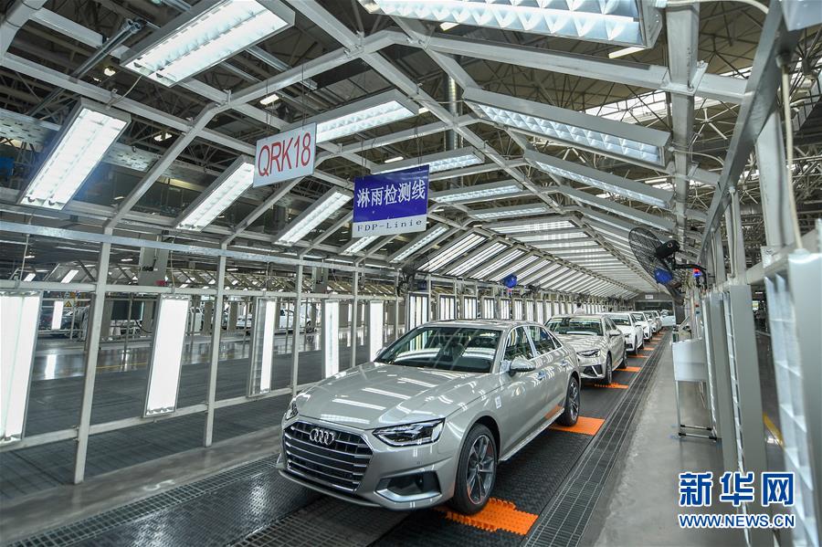 8月10日,在一汽-大眾長春基地總裝車間,裝配好的車輛接受淋雨測試。中國第一汽車集團有限公司7月銷售整車32.2萬輛,同比增長23.2%,延續(xù)上半年的增長態(tài)勢。新華社記者張楠攝。