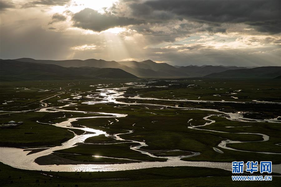 夕照下的泥拉壩濕地一角(8月9日攝)。新華社記者江宏景攝。