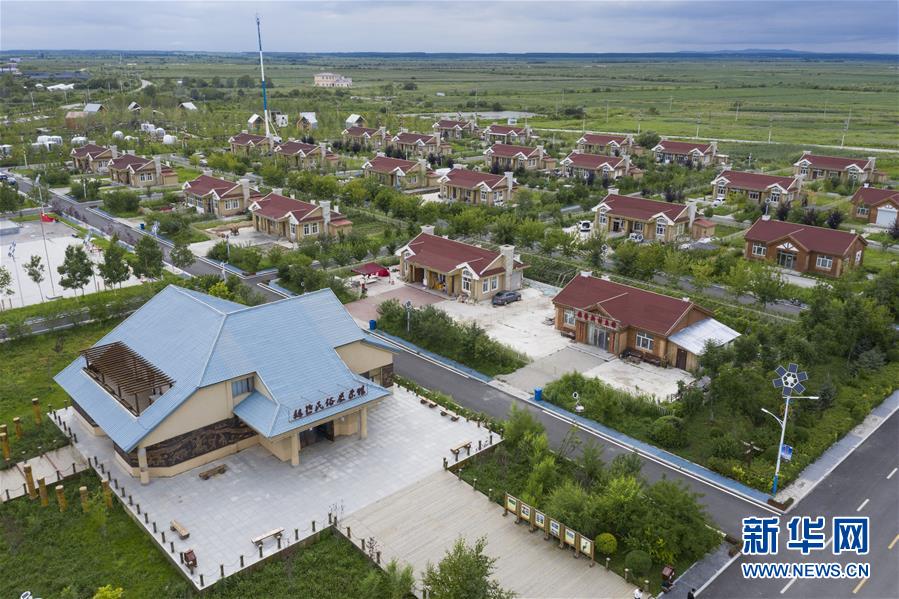 這是8月9日拍攝的抓吉赫哲族村(無人機照片)。抓吉赫哲族村面積1.3平方公里,是赫哲族“三鄉(xiāng)五村”聚居地之一。近年來,抓吉赫哲族村在撫遠市“烏蘇里船歌風光帶”框架下,大力發(fā)展民俗文化旅游產(chǎn)業(yè)。新華社記者謝劍飛攝。