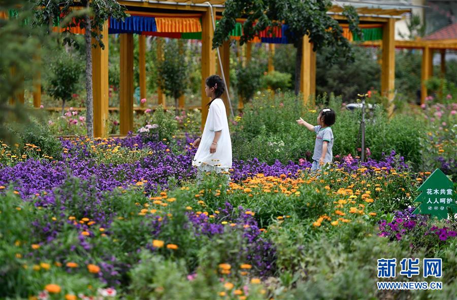 8月11日,小朋友在尖扎縣昂拉鄉(xiāng)德吉村花海景區(qū)內(nèi)游玩。新華社記者張龍攝
