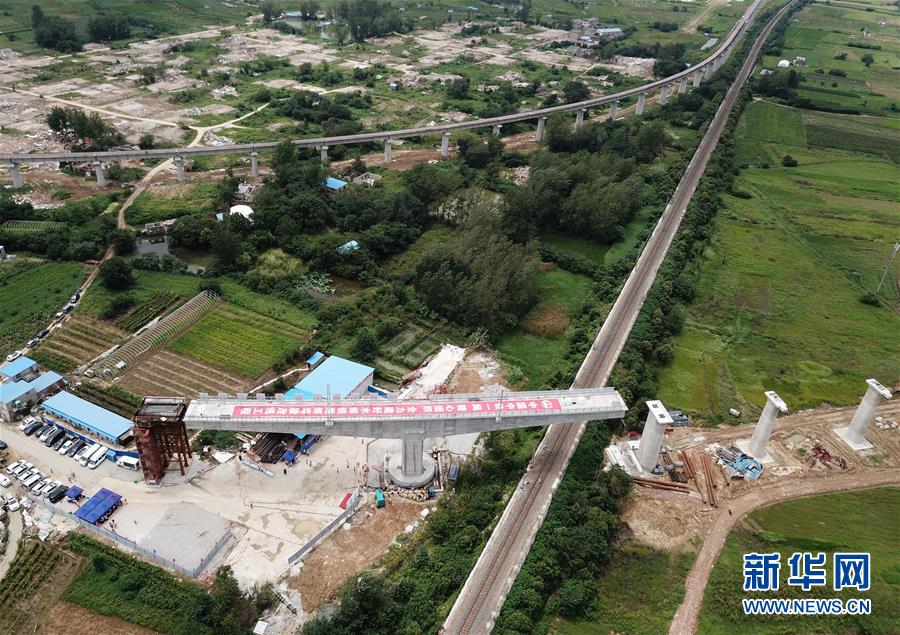 這是8月12日拍攝的水蚌鐵路蚌埠段改線工程?hào)|站疏解線特大橋跨越京滬鐵路上行線轉(zhuǎn)體梁轉(zhuǎn)體施工現(xiàn)場(chǎng)(無(wú)人機(jī)照片)。當(dāng)日,由中鐵一局承建的水蚌鐵路蚌埠段改線工程?hào)|站疏解線特大橋跨越京滬鐵路上行線64米T構(gòu)轉(zhuǎn)體梁成功實(shí)現(xiàn)轉(zhuǎn)體。新華社記者 劉軍喜 攝