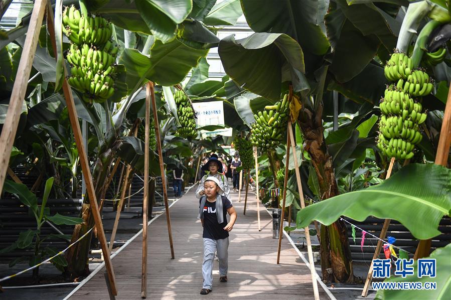 在吉林省永吉縣萬昌鎮(zhèn)宇豐紅果木瓜產(chǎn)業(yè)園,游客在生態(tài)觀光采摘大棚內(nèi)參觀游覽(8月12日攝)。新華社記者 許暢 攝