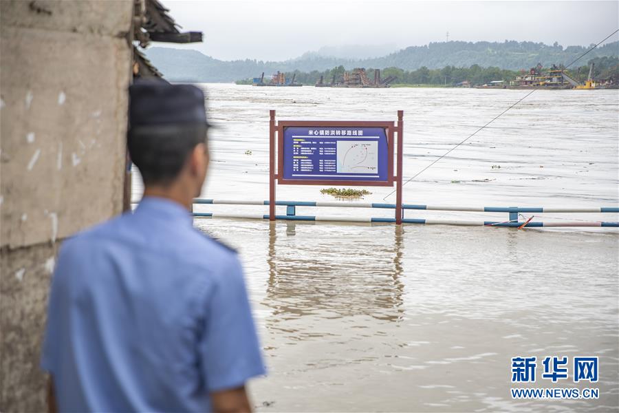 8月13日,在重慶市潼南區(qū)米心鎮(zhèn),涪江水位明顯上漲,一名工作人員在岸邊執(zhí)勤。受上游強(qiáng)降雨影響,嘉陵江近日出現(xiàn)明顯漲水過程,“嘉陵江2020年第1號洪水”已在嘉陵江支流涪江形成。重慶市正式啟動洪水防御Ⅱ級應(yīng)急響應(yīng)。據(jù)初步統(tǒng)計,截至13日16時30分,位于涪江畔的重慶市潼南區(qū),沿涪江7個鎮(zhèn)街不同程度受災(zāi),受災(zāi)人數(shù)8209人,轉(zhuǎn)移人口6658人,農(nóng)作物受災(zāi)面積5579畝。新華社記者黃偉攝