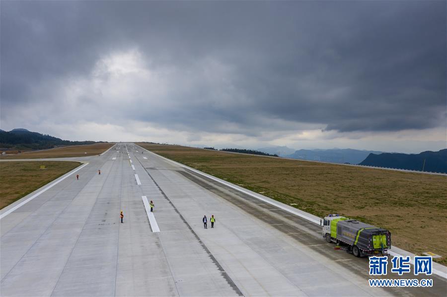 8月12日,校飛正式開始前一天,工作人員對(duì)仙女山機(jī)場(chǎng)跑道路面進(jìn)行清潔(無(wú)人機(jī)照片)。8月13日,位于重慶武隆區(qū)的仙女山機(jī)場(chǎng)飛行校驗(yàn)工作正式開始。據(jù)介紹,重慶仙女山機(jī)場(chǎng)校飛時(shí)間大約需3至5天。重慶仙女山機(jī)場(chǎng)于2018年4月全面開工,機(jī)場(chǎng)跑道長(zhǎng)2800米、寬45米,航站樓總面積6000平方米,投用后可滿足每年60萬(wàn)人次的旅客吞吐量。新華社記者劉潺攝