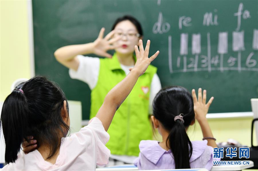 8月13日,貴州省思南縣雙塘街道麗景社區(qū)易地扶貧搬遷安置點(diǎn)的孩子們?cè)谏弦魳?lè)課。新華社記者楊文斌攝