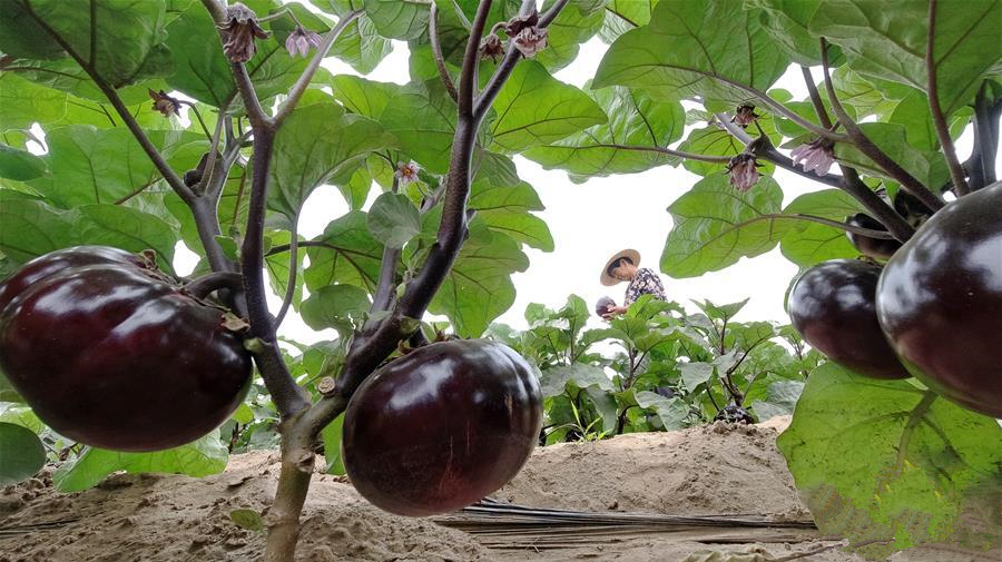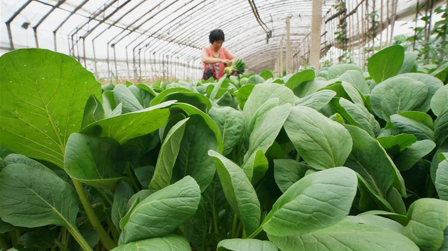 6月18日,唐山市豐南區(qū)黃各莊鎮(zhèn)雙坨村農民在大棚內收獲蔬菜。