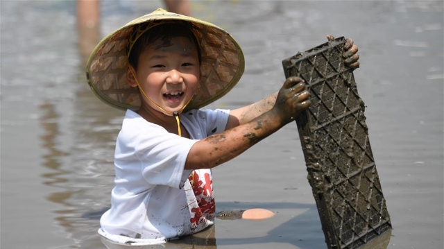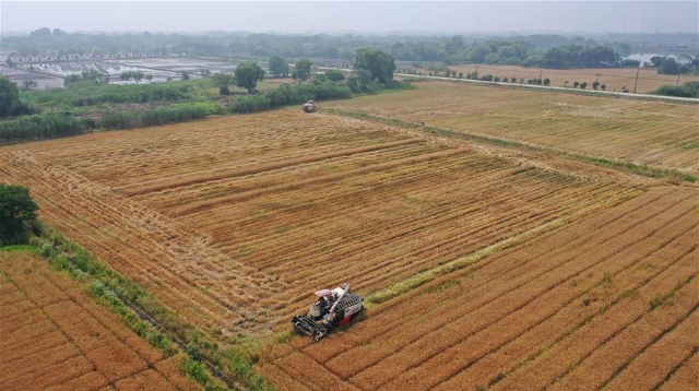 近日,江南農(nóng)戶(hù)們正忙收割麥田。