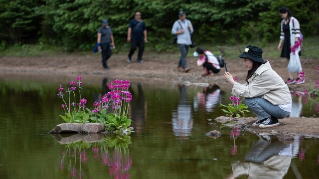 近日,位于四川省漢源縣宜東鎮(zhèn)桌子山上的報(bào)春花遍地綻放,引來(lái)游人觀賞拍照。