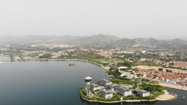 山東濟南風(fēng)景區(qū)——雪野湖波光粼粼,岸邊綠樹環(huán)抱。