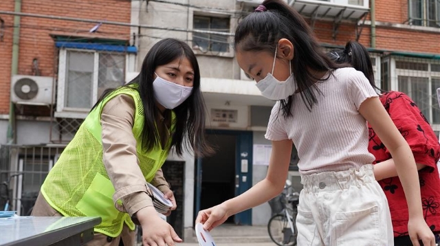 5月17日,在東華門街道韶九社區(qū),小朋友在參加垃圾分類趣味游戲。