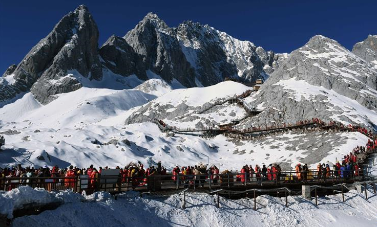 冬季,云南省麗江玉龍雪山景色秀美壯觀,吸引了眾多游客。