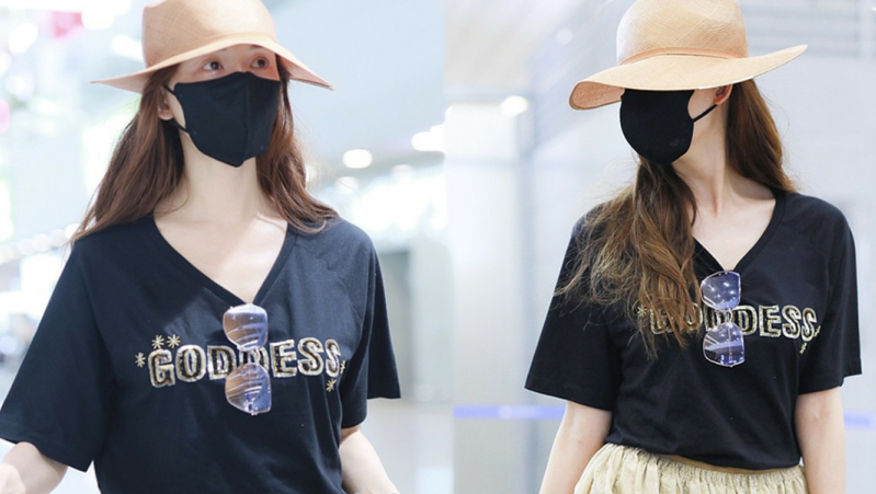 關(guān)曉彤淡定抱臂行走,脖子上掛U型枕毫無(wú)偶像包袱。