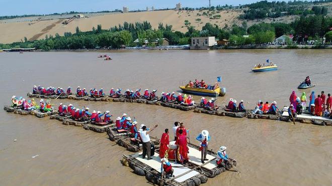 當日,“情系母親河——皮筏對歌唱響家鄉(xiāng)情”活動在寧夏中衛(wèi)市沙坡頭景區(qū)舉行。