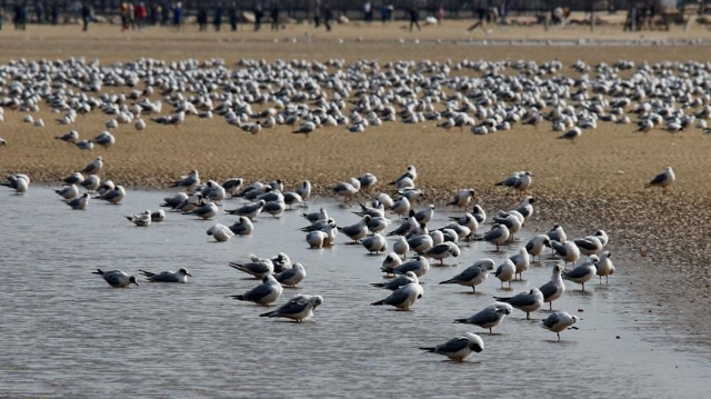 近日,大批候鳥(niǎo)飛抵河北省秦皇島市沿海濕地,出現(xiàn)“萬(wàn)鳥(niǎo)臨海”奇觀。