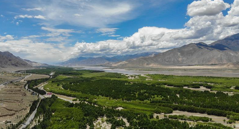 6月27日拍攝的雅魯藏布江山南段風(fēng)光(無人機照片)。