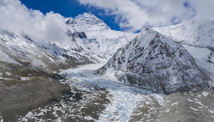 海拔5200米的珠穆朗瑪峰登山大本營,坐落在珠峰腳下一條狹長的山坳里。2020珠峰高程測量隊一個月前便在這里“安家落戶”。