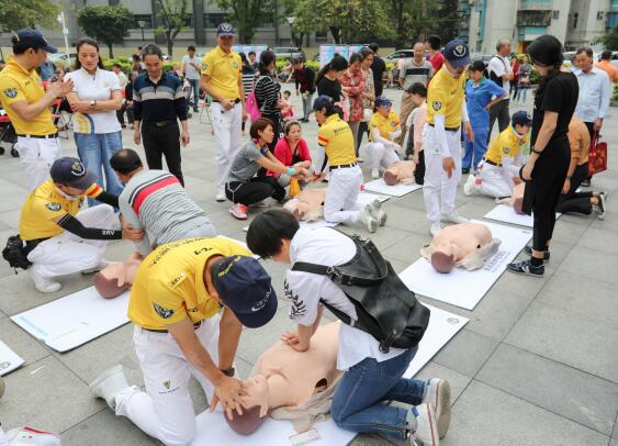 深圳市賽場救護隊的專業(yè)人員在現(xiàn)場為蓮花一村的社區(qū)居民普及了大眾急救技能,并指導大家進行模擬心肺復蘇的演練,中老年朋友則享受了免費的體質(zhì)檢測服務。