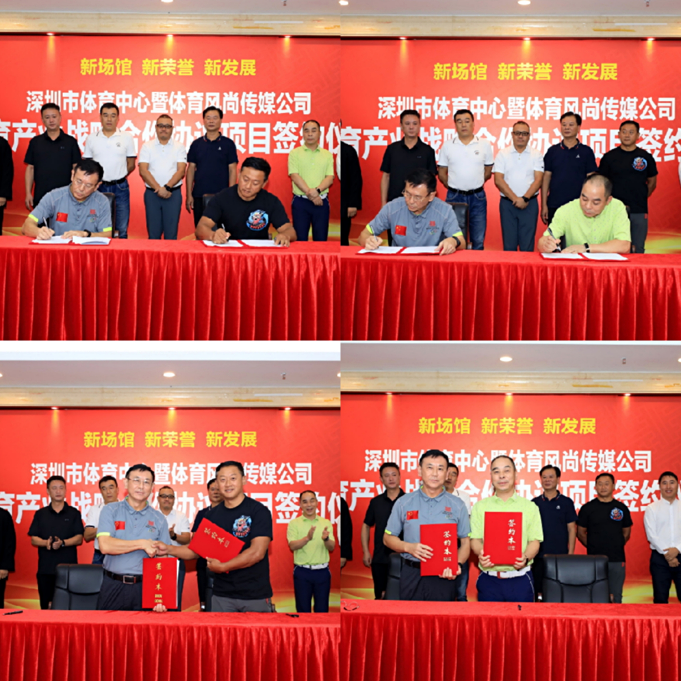 深圳體育風(fēng)尚傳媒發(fā)展有限公司代表深圳市體育中心與深圳最具規(guī)模的賽事承辦公司之一——深圳市五環(huán)體育產(chǎn)業(yè)發(fā)展集團(tuán)、深圳體育會(huì)展龍頭企業(yè)——深圳國際體育博覽會(huì)有限公司、擁有自有國內(nèi)最具規(guī)模的業(yè)余帆船賽事的深圳市帆海匯俱樂部投資發(fā)展有限公司、中國太極拳運(yùn)動(dòng)權(quán)威機(jī)構(gòu)——深圳市弘武太極拳研究院四家深圳本土體育產(chǎn)業(yè)知名機(jī)構(gòu)代表簽訂了多項(xiàng)體育產(chǎn)業(yè)戰(zhàn)略協(xié)議,并與各方就體育中心未來體育產(chǎn)業(yè)發(fā)展方向及行業(yè)資源的引進(jìn)與落地進(jìn)行了深度探討。