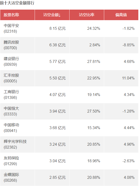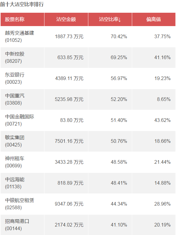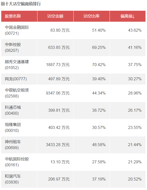 備注:以上數(shù)據(jù)由智通機(jī)器人根據(jù)港交所數(shù)據(jù),經(jīng)過人工智能運算后自動生成,并不保證數(shù)據(jù)100%準(zhǔn)確;偏離值為當(dāng)前股票的沽空比率與該股過去30天平均沽空比率的差值。