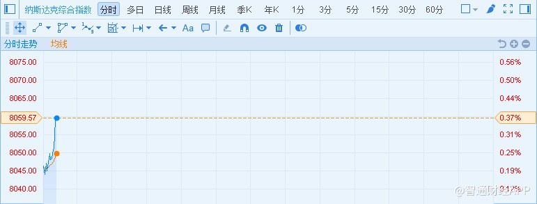 智通財(cái)經(jīng)APP獲悉,周三,美股基本平開(kāi),其中納斯達(dá)克指數(shù)盤初高走,升穿8046.315點(diǎn),創(chuàng)紀(jì)錄新高。截至發(fā)稿,納指報(bào)8059.57,漲30點(diǎn)或0.37%。