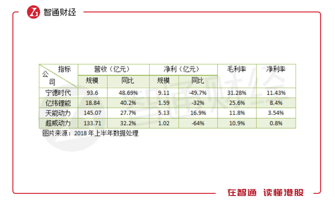 兩大鉛酸電池龍頭天能動力(00819)和超威動力(00951)也在積極轉(zhuǎn)型生產(chǎn)鋰動力電池,鋰動力電池成為國內(nèi)未來電池行業(yè)角逐的主要戰(zhàn)場。鋰電池的成長能力及盈利能力要比鉛酸電池高,上半年,由于政策影響,鋰電行業(yè)凈利潤出現(xiàn)下滑較大,但凈利率仍遠(yuǎn)高于鉛酸電池。