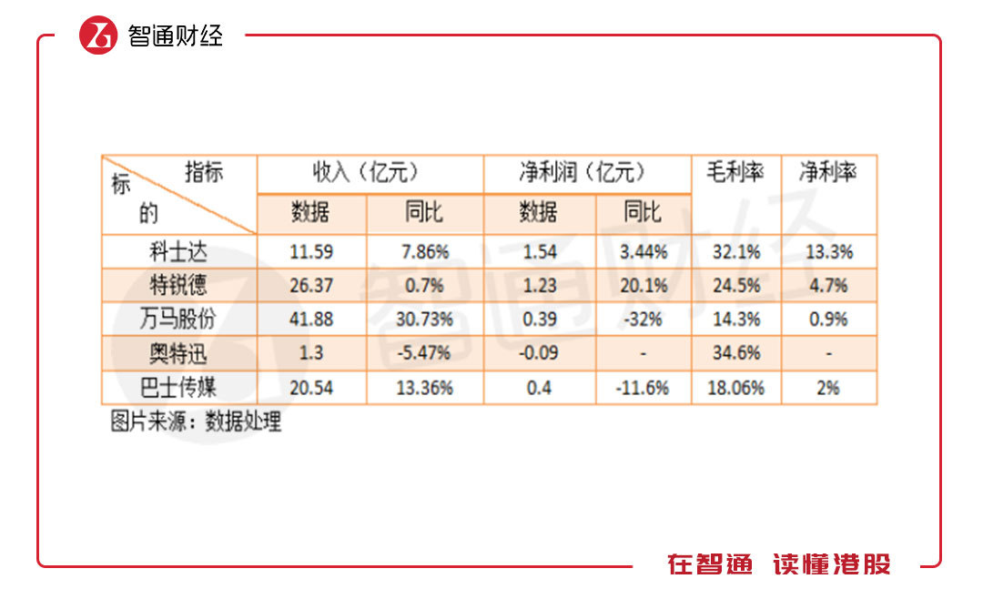 下游設(shè)備運營商主要是充電樁運營以及充電站的運營,參與者的業(yè)績相對來說比中游要好很多。參與者中,包括科士達、特銳德、萬馬股份、奧特迅以及巴士傳媒,當然有些公司除了做充電樁運營之外也會存在其他業(yè)務(wù),整體來看,部分參與者還是存在正向增長的業(yè)績的,但整體的利潤率仍偏低。