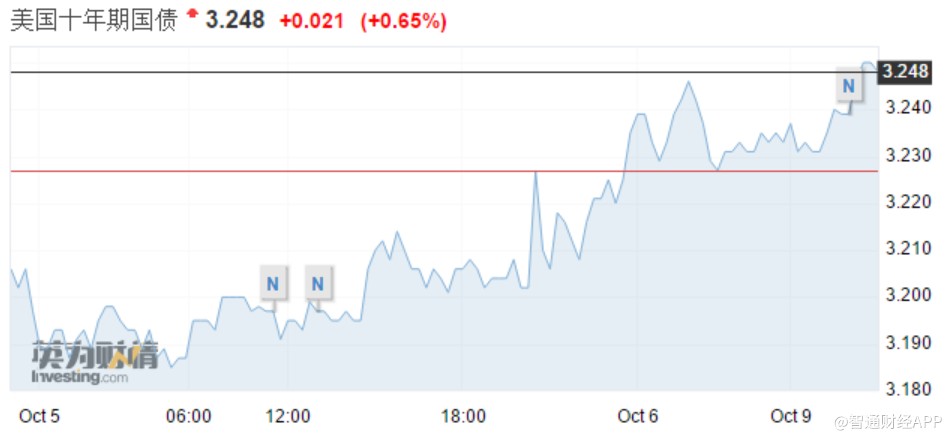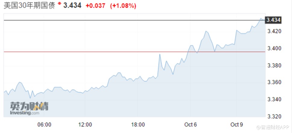 美債持續(xù)遭遇拋售,收益率沖高勢頭不減。智通財經(jīng)APP獲悉,周二亞市早盤,美國30年期國債收益率觸及3.434%,再度刷新四年新高。10年期美債收益率升至3.248%,刷新七年新高。昨日美債市場因哥倫布日休市一天。