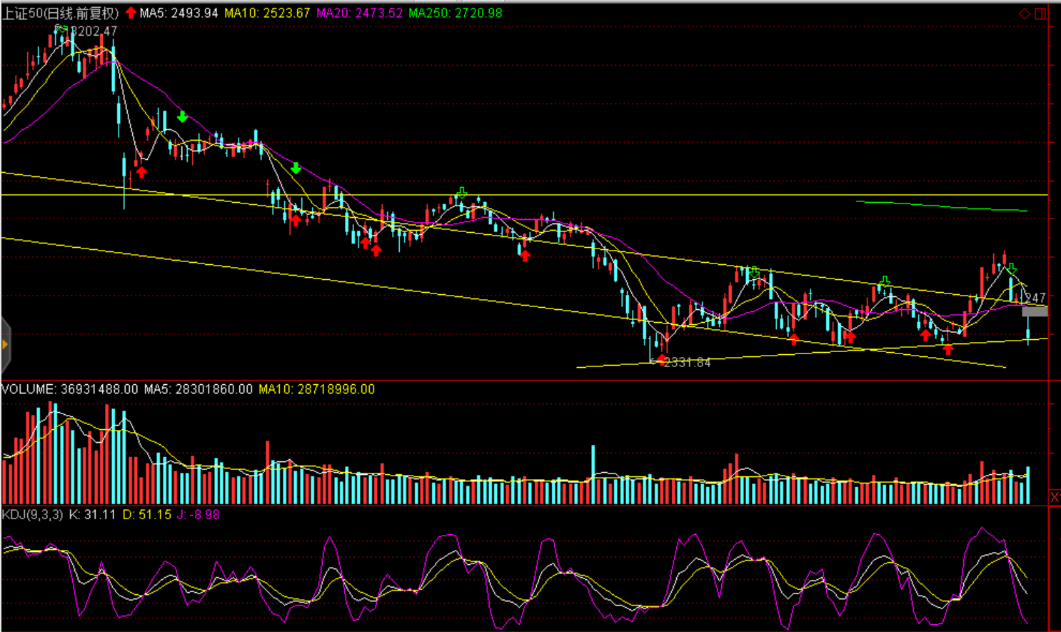 消息面:國務院發(fā)布完善促進消費體制機制實施方案,進一步放寬服務消費領域市場準入;中國工程機械1-9月納入統(tǒng)計的25家主機制造企業(yè),共計銷售各類挖掘機械產(chǎn)品156242臺,同比漲幅53.3%;國內(nèi)市場銷量142281臺,同比漲幅49.3%;出口銷量13852臺,同比漲幅109.7%;離岸人民幣兌美元收復6.9關口,紐約尾盤漲458個基點,報6.8786,漲幅為0.66%,刷新近三周新高;國債期貨大幅收高,10年期主力合約收漲0.41%,創(chuàng)近四個月最大單日漲幅;歷史經(jīng)驗看美股市場大幅回調(diào)期間,通常都伴隨著全球范圍內(nèi)風險偏好的急劇惡化,表現(xiàn)為風險資產(chǎn)悉數(shù)大跌、而避險資產(chǎn)如國債、黃金、日元則多數(shù)向好,這也凸顯了整體避險情緒的升溫;受到海外持續(xù)下跌影響,雖處于估值底部的A股不可避免受到錯殺,股指進入弱平衡區(qū)間運行。海外股市影響A股重構(gòu)弱平衡區(qū)間,短期恐慌殺跌后進入震蕩筑底,底部形成視諸多因素共振影響,金融市場穩(wěn)定、監(jiān)管政策導向、行業(yè)政策及估值決定。短期上證50能否企穩(wěn)對于股指至關重要。