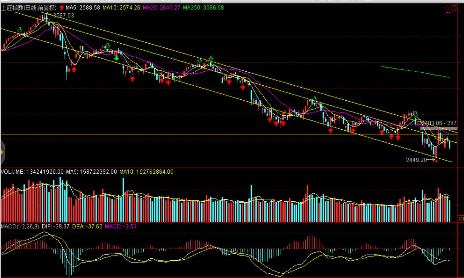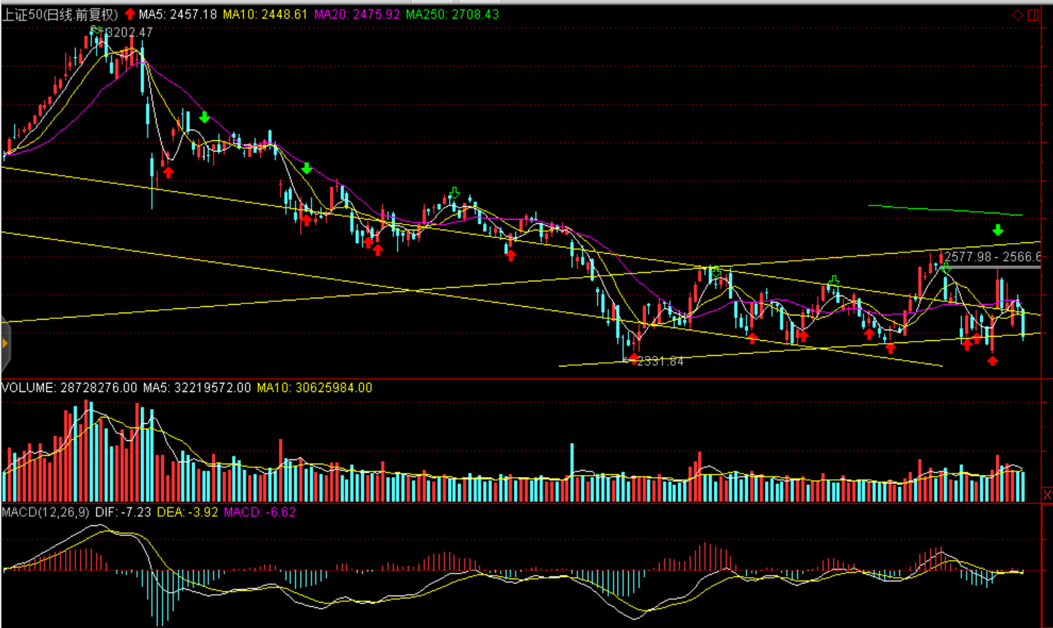 周一兩市股指全天震蕩下跌,股指均報(bào)收中陰線。上證50跌3.21%報(bào)2389.58點(diǎn),滬綜指收跌2.18%報(bào)2542.1點(diǎn),深證成指跌2.43%報(bào)7322.24點(diǎn),創(chuàng)業(yè)板指跌1.01%報(bào)1250.48點(diǎn)。兩市僅成交2554億元,環(huán)比減少271億元,北上資金今日逆勢(shì)凈流入逾29億元。盤(pán)面看白酒領(lǐng)跌大消費(fèi)白馬,茅臺(tái)跌停引發(fā)蝴蝶效應(yīng),食品、家電、醫(yī)藥聯(lián)袂大幅下跌,資金集中流出消費(fèi)白馬。