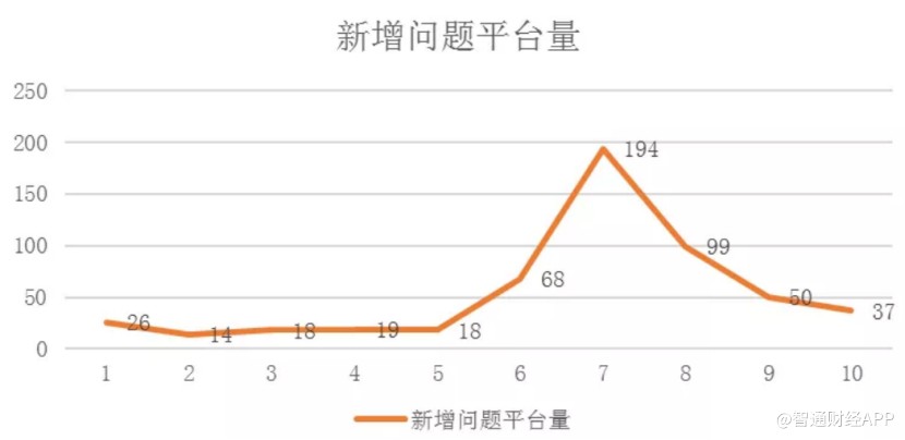 自從監(jiān)管加強(qiáng)行業(yè)規(guī)范和引導(dǎo)后,P2P問(wèn)題平臺(tái)便不斷被爆出。智通財(cái)經(jīng)APP了解到,今年6月以來(lái),國(guó)內(nèi)新增問(wèn)題平臺(tái)逐漸增多,并在7月份達(dá)到最多的194家,但到10月份新增問(wèn)題平臺(tái)的數(shù)量卻已經(jīng)低至37家。也就是說(shuō),在新的監(jiān)管強(qiáng)度下,又有一批問(wèn)題公司得以治理,行業(yè)整合進(jìn)程已經(jīng)被加速。