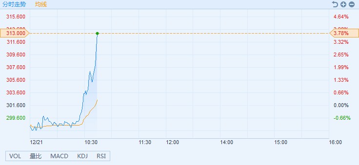 智通財經APP獲悉,騰訊(00700)股價直線拉升。截至10時43分,漲3.78%,報價313港元,成交額28.19億,貢獻指數76點。