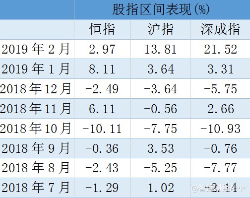 截至發(fā)稿,恒指2月累計(jì)上漲2.97%,同期滬指、深成指分別上漲13.81%與21.52%。下圖統(tǒng)計(jì)了去年6月至今年2月的主要股指區(qū)間表現(xiàn),可以看到,今年開年以來(lái),兩地市場(chǎng)的表現(xiàn)幾乎可以用“靚眼”來(lái)形容。