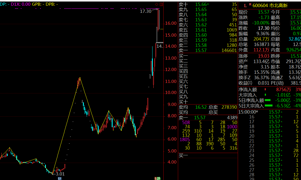 可以很明顯的看出,這是一波五分鐘級別的雙中樞上漲,這波上漲隨著周五尾盤跌入2995點結(jié)束。市場在后續(xù)的演化過程中會做出選擇:開始五分鐘級別下跌趨勢,或者圍繞著五分鐘上漲趨勢的最后一個中樞進(jìn)行行情級別擴(kuò)張。不論哪種情況,從纏論的視角,短期這輪上漲趨勢暫告一段落,3129.94點即是五分鐘趨勢的第一類賣點,在下周,市場企穩(wěn)后,大概率會上沖構(gòu)建第二類賣點。