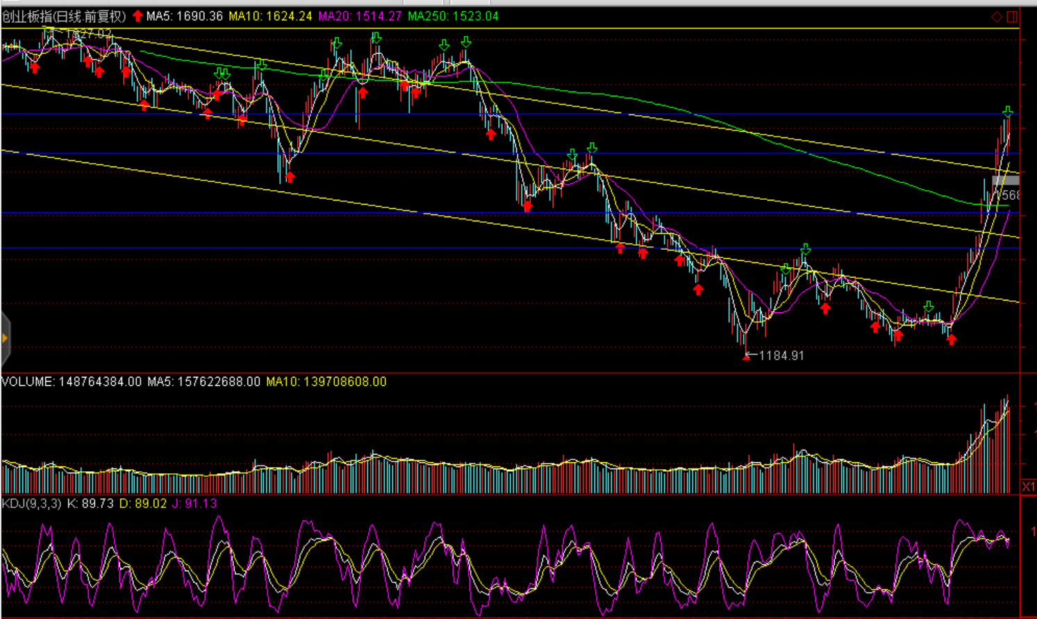 周一兩市股指震蕩反彈,三大股指漲幅均超過1%,其中創(chuàng)業(yè)板指數(shù)領(lǐng)漲。上證綜指收漲1.92%報3026.99點,深證成指漲3.64%報9704.33點,創(chuàng)業(yè)板指大漲4.43%報1727.8點,反包上周五長上影線,并刷新9個月新高;萬得全A收漲近3%,兩市成交9443億元,環(huán)比減少2398億元;盤面看電力互聯(lián)網(wǎng)(特高壓、智能電網(wǎng)、能源互聯(lián)網(wǎng))、港口、海運、傳媒、白酒股漲幅居前,兩市合計270家公司漲停板,近期強勢股出現(xiàn)大幅回調(diào),市場人氣維持較高水平,但風(fēng)化加劇,科技股擴(kuò)散效應(yīng)明顯,板塊輪動加快。