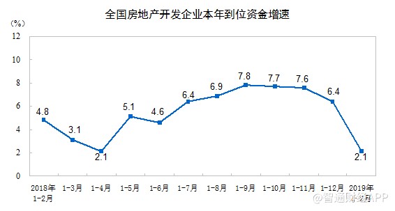 1-2月份,房地產開發(fā)企業(yè)到位資金24497億元,同比增長2.1%,增速比2018年全年回落4.3個百分點。其中,國內貸款4976億元,下降0.5%;利用外資52億元,增長3.3倍;自籌資金7279億元,下降1.5%;定金及預收款7366億元,增長5.6%;個人按揭貸款3458億元,增長6.5%。