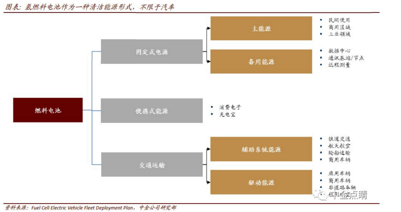 燃料電池產(chǎn)業(yè)鏈尚處在商業(yè)化早期,中性看待燃料電池板塊。但從資金門檻和技術門檻角度,未來有較高的市場份額和利潤空間的企業(yè)存在機會,細分板塊推薦順序是燃料電池商用車、加氫站、質(zhì)子交換膜、燃料電池電堆及系統(tǒng)。全產(chǎn)業(yè)鏈可以分為上游的氫能制備、貯存、運輸、加注等環(huán)節(jié);中游的燃料電池電堆及系統(tǒng)、相關零部件等;下游的整車應用、工程服務與營運等。產(chǎn)業(yè)鏈中上游制氫、儲氫、加氫站建設快于中下游,在目前主流的制氫路線中(煤焦化&;氣化制氫、油氣制氫、氯堿制氫和清潔能源棄電制氫)。