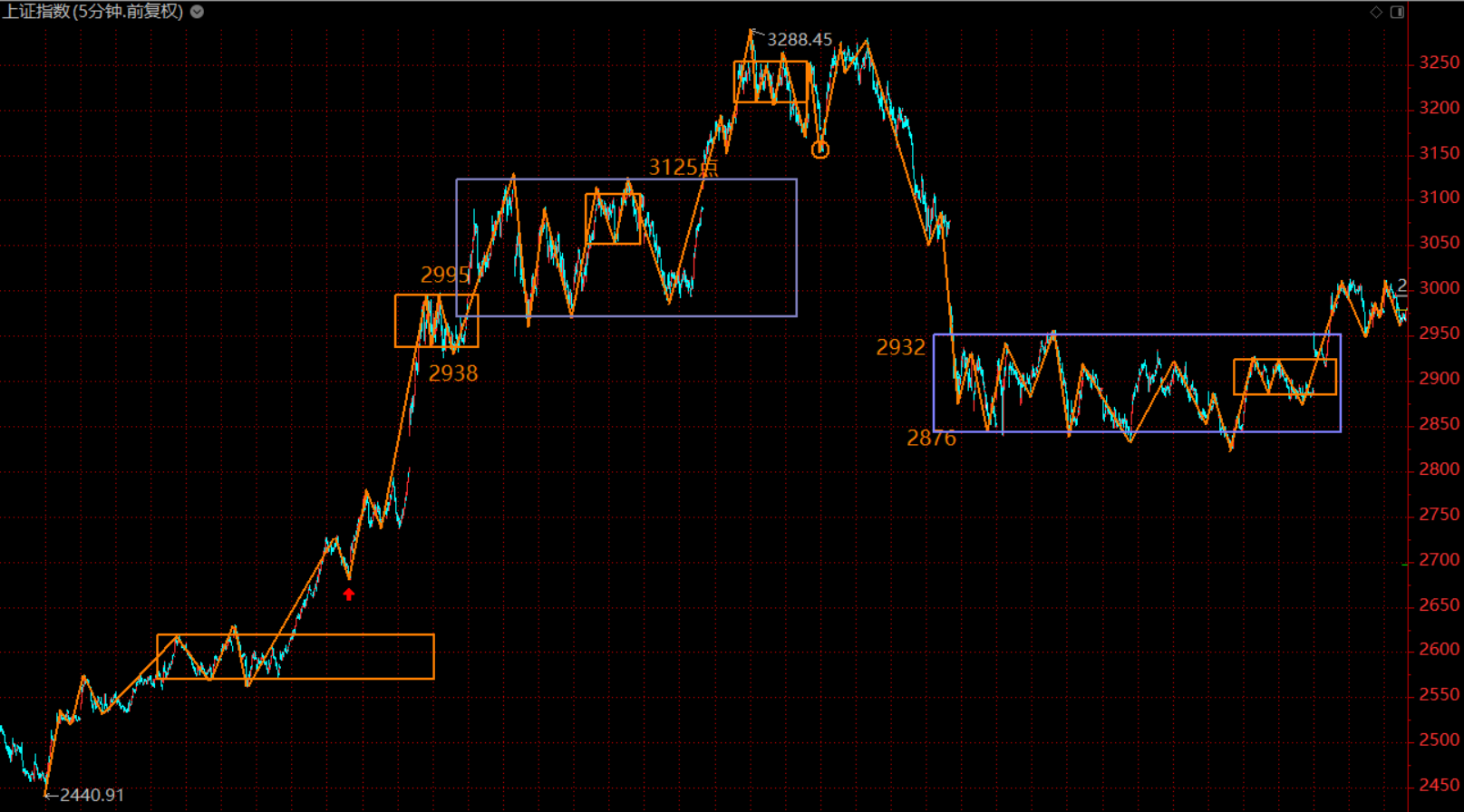 市場(chǎng)已進(jìn)入下跌趨勢(shì)的初期,本周初將會(huì)反彈,構(gòu)建五分鐘上漲趨勢(shì)的第二類賣(mài)點(diǎn),在3050附近沒(méi)有獲利了結(jié)的投資者,注意這次賣(mài)出良機(jī),降低倉(cāng)位以防范風(fēng)險(xiǎn)。耐心等待市場(chǎng)回到2900附近再行布局。